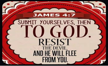 James 4:7 begins with this directive, Submit yourselves to God. In other words, we must yield to God's divine authority and his holy will — in all things. Before we can successfully resist the Devil, we must submit ourselves to God. To submit means to accept or yield to a superior force or to the authority or will of another. When we do this, God's grace will be poured out to us in great measure. If we do not submit to God, he will withdraw grace and we will not be able to resist the temptations of the Devil.
